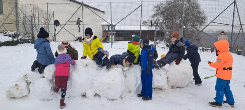 Wir bauen gerne in der Sandkiste, spielen im Schnee, klettern auf dem Klettergerüst und haben Spaß mit unseren Freunden. Auf den Sportplätzen und der großen Wiese können wir spannende Bewegungsspiele spielen. Auch gemeinsames Malen und Basteln kommt im Garten nicht zu kurz. Wir sind gerne an der frischen Luft!