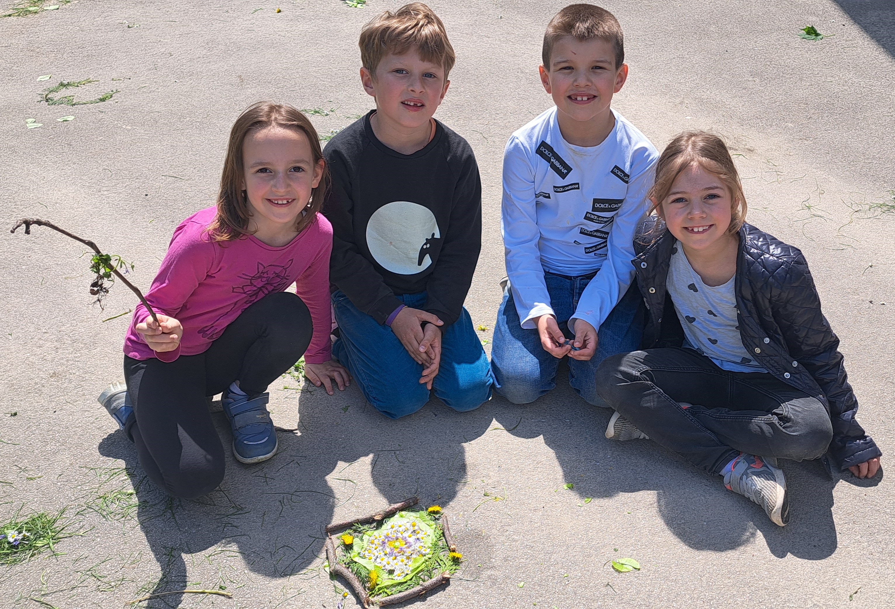 Die Kinder erstellten Mandalas aus Naturmaterialien.