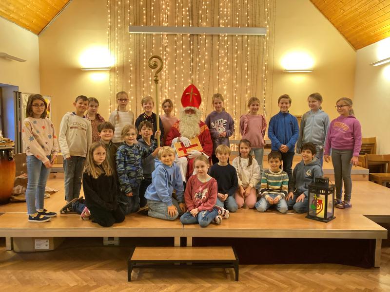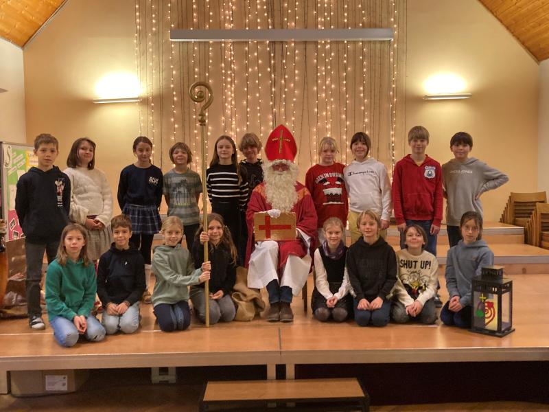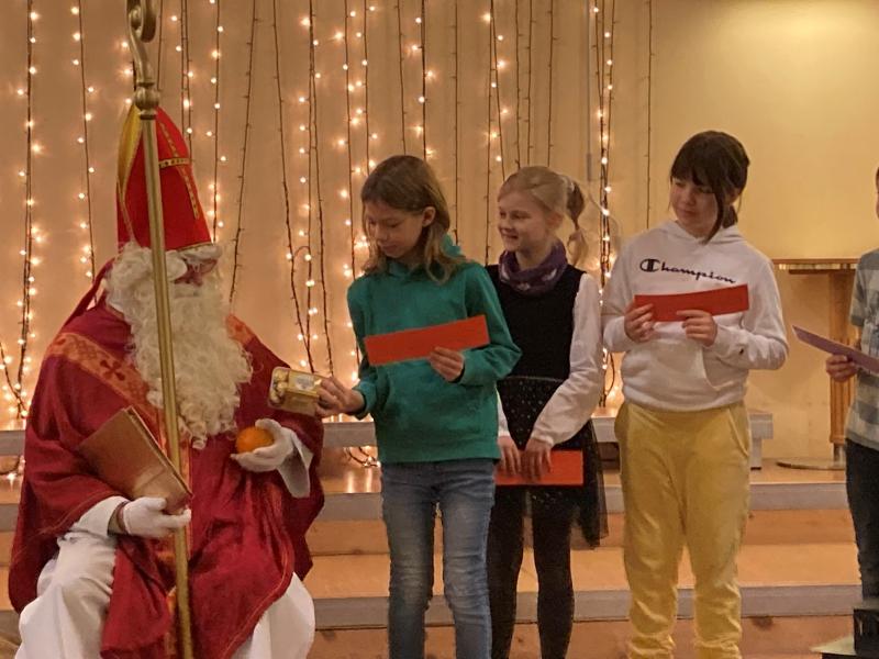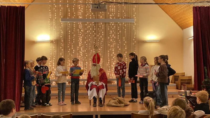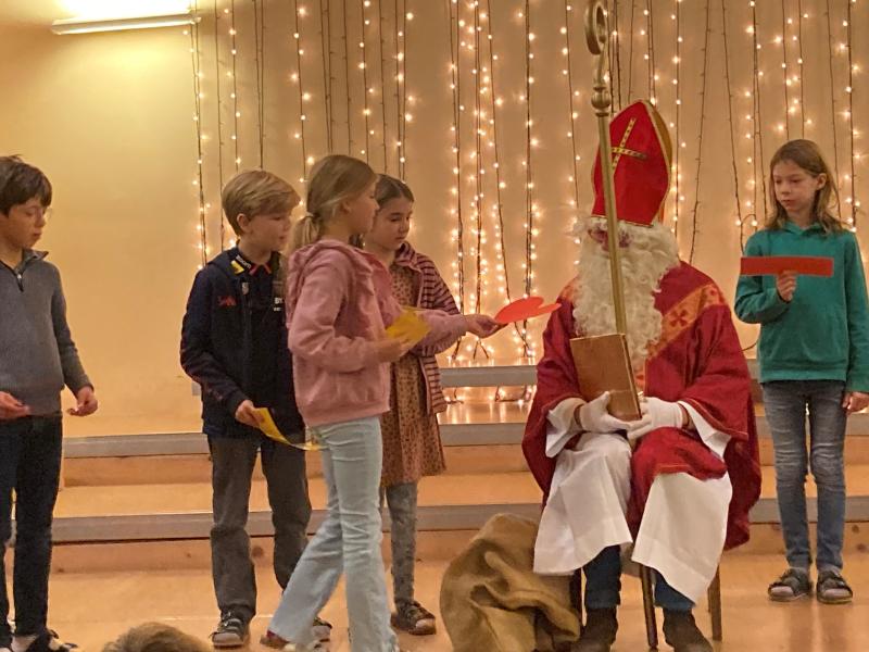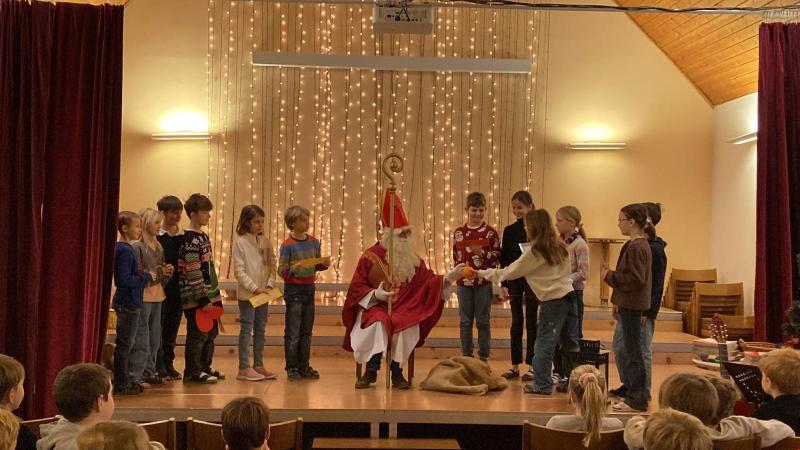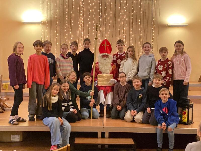 Der Hl. Nikolaus besuchte am 6. Dezember die Schülerinnen und Schüler der VOSÖ PVS Kritzendorf, die ihm eine besondere Überraschung bereiteten: In diesem Jahr beschenken sie den heiligen Mann, der für seine Gaben berühmt ist. Jedes Geschenk hatte etwas mit einer der Erzählungen zu tun, die die Schülerinnen und Schüler im Religionsunterricht gehört hatten. Zum Abschluss der kleinen Feier machte der Hl. Nikolaus seinem Ruf alle Ehre und schenkte den Kindern einen kleinen Schoko-Nikolaus zur Erinnerung.