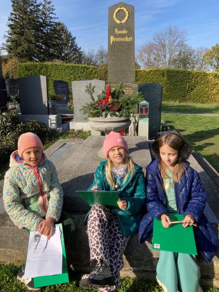 Die Schülerinnen und Schüler der 3. Klassen besuchten gemeinsam mit ihren beiden Religionslehrerinnen den Friedhof Kritzendorf.
