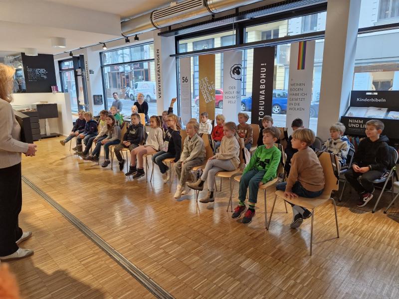 Die Schülerinnen und Schüler der 2b besuchten am 23. Oktober mit ihrer Klassenlehrerin und ihrer Religionslehrerin das Bibelzentrum in Wien.