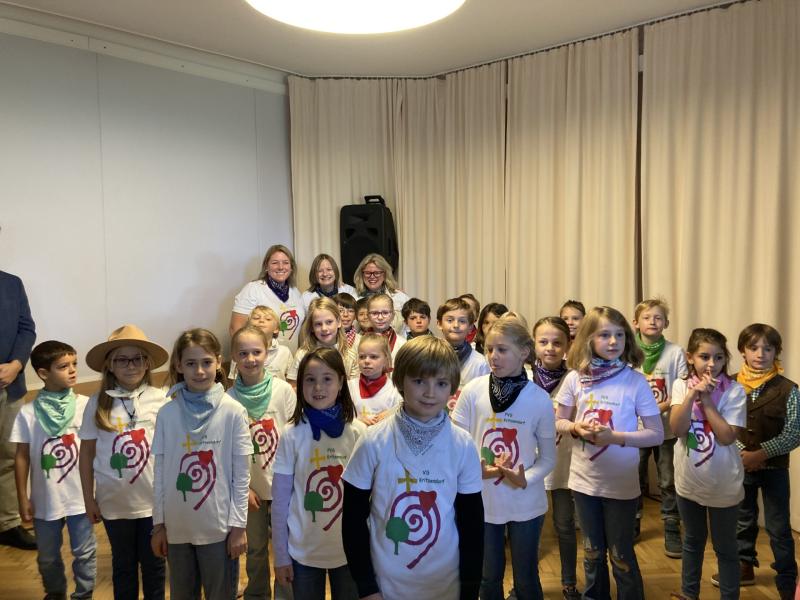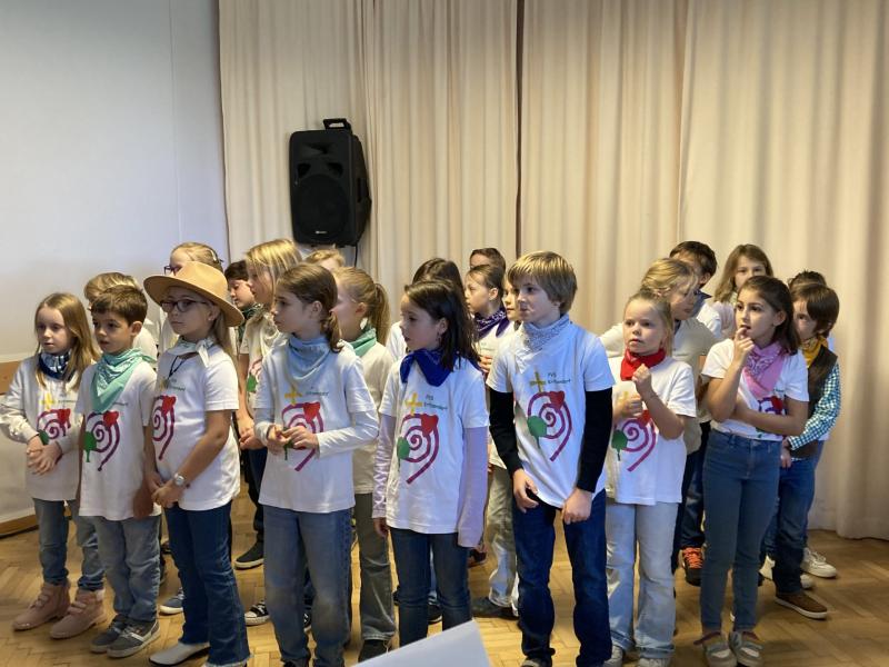 Die 3. Klassen beteiligten sich gemeinsam mit ihren beiden Klassenlehrerinnen am Erntedankfest der Pfarre St. Vitus Kritzendorf mit einer beschwingten Aufführung. Begleitet von Gitarre und Perkussionsinstrumenten boten sie lustige Herbstlieder dar. Besonders der Line Dance zu " Cotton-Eye Joe" begeisterte das zahlreiche Publikum. Danke allen, die sich dafür extra Zeit genommen haben!