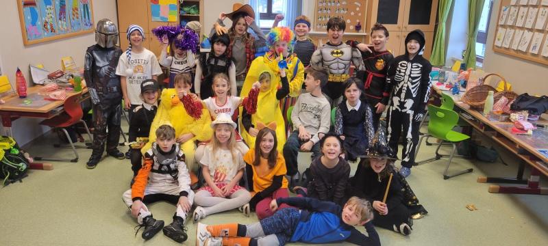 Am Faschingsdienstag kann man viele ungewöhnliche Schulkinder in den Klassen antreffen: Da sitzt ein Bankräuber neben einer Hexe oder ein Drache neben einem Schmetterling. Ungewöhnlich waren auch deren Lehrkräfte: Pippi Langstrumpf, ein Blumentopf oder ein Baby...