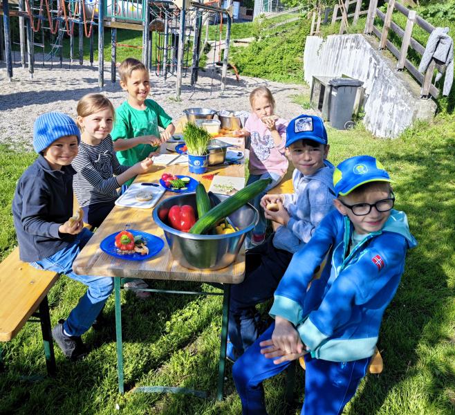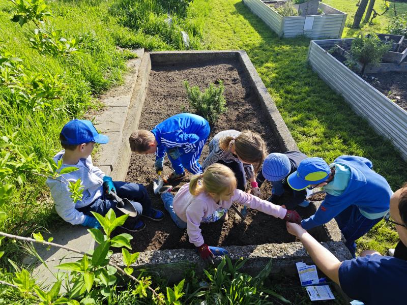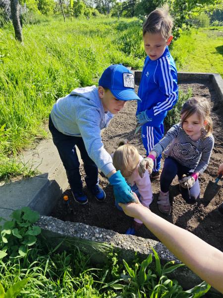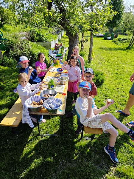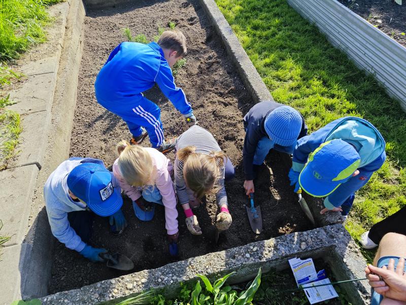 Die Kinder haben in Gruppen Erbsen, Karotten, Kresse, Salat, Kohlrabi, Schnittlauch und essbare Blüten gepflanzt.😇