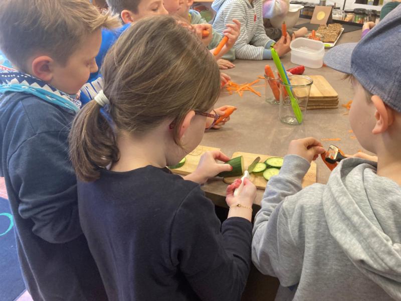 Bei spannenden Stationen erforschten die Kinder der dritten Klasse zum Beispiel wie viel Stück Würfelzucker in alltäglichen Lebensmitteln zu finden sind, und dass man Brownies auch ohne zugesetzten Zucker backen kann. Highlight bei jedem Besuch ist die gemeinsame gesunde Jause.