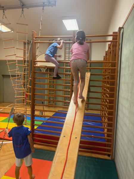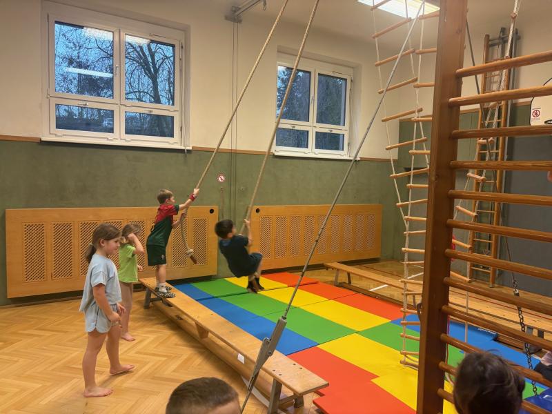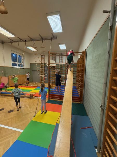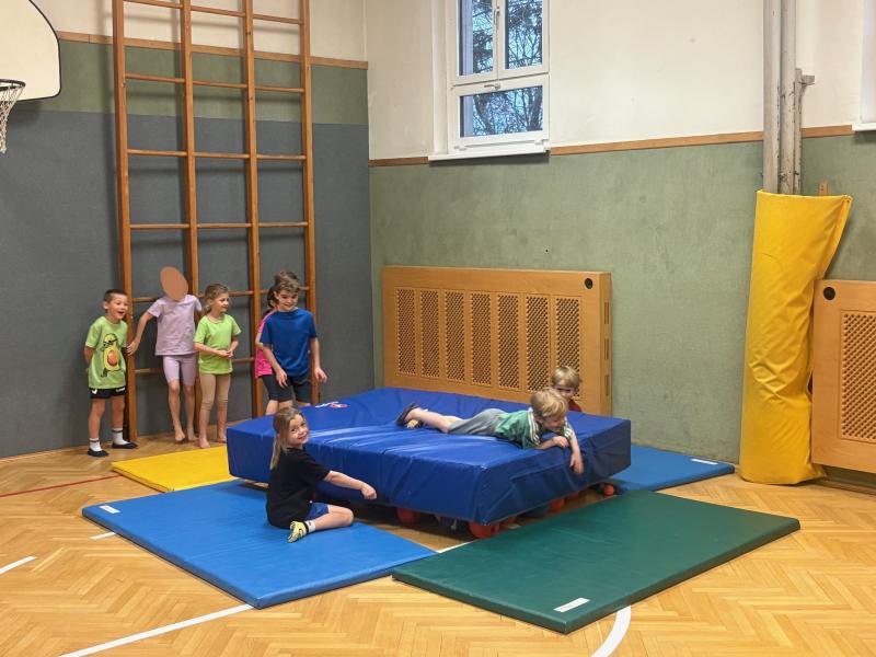 Die Kinder der 1.a Klasse lieben Geräteturnen im Sportunterricht.