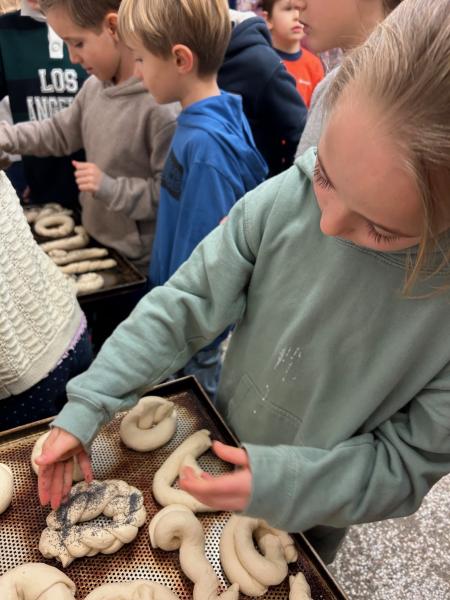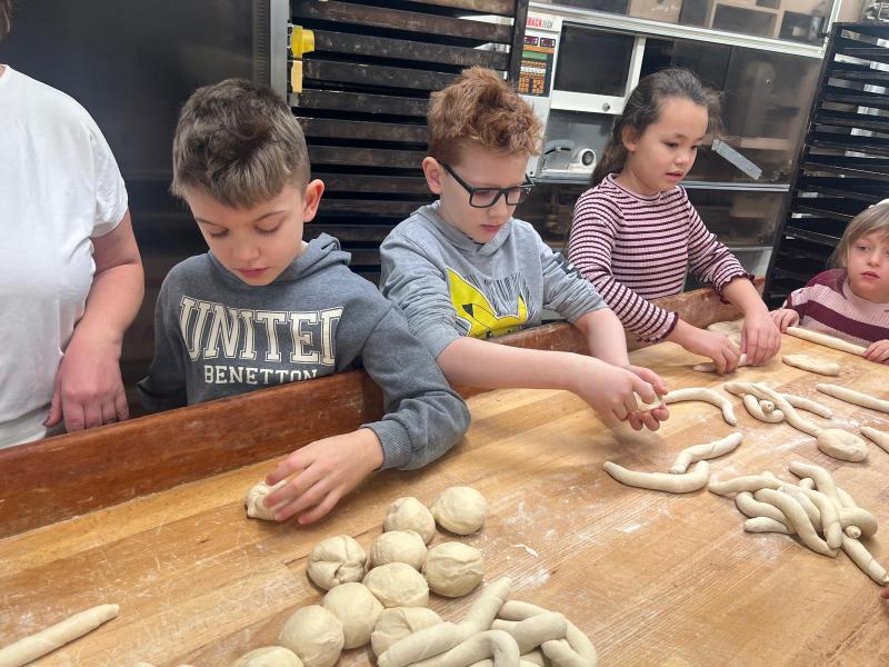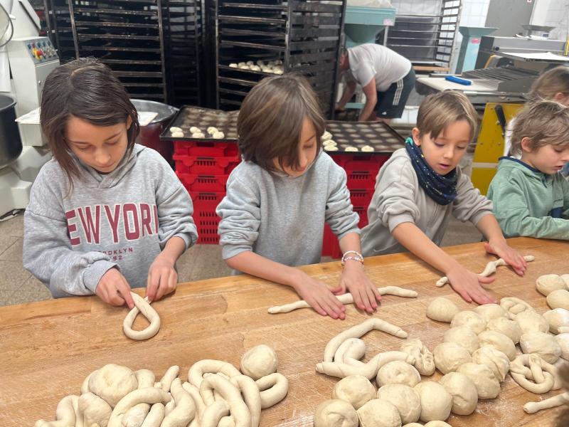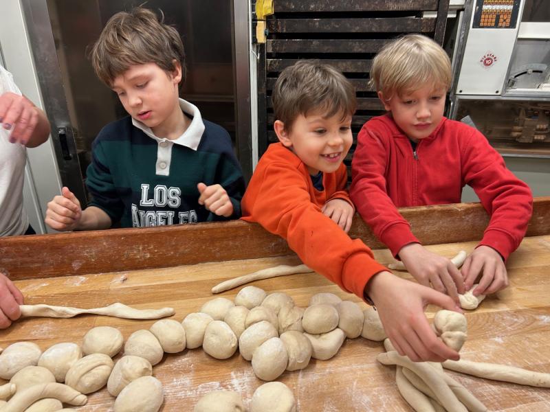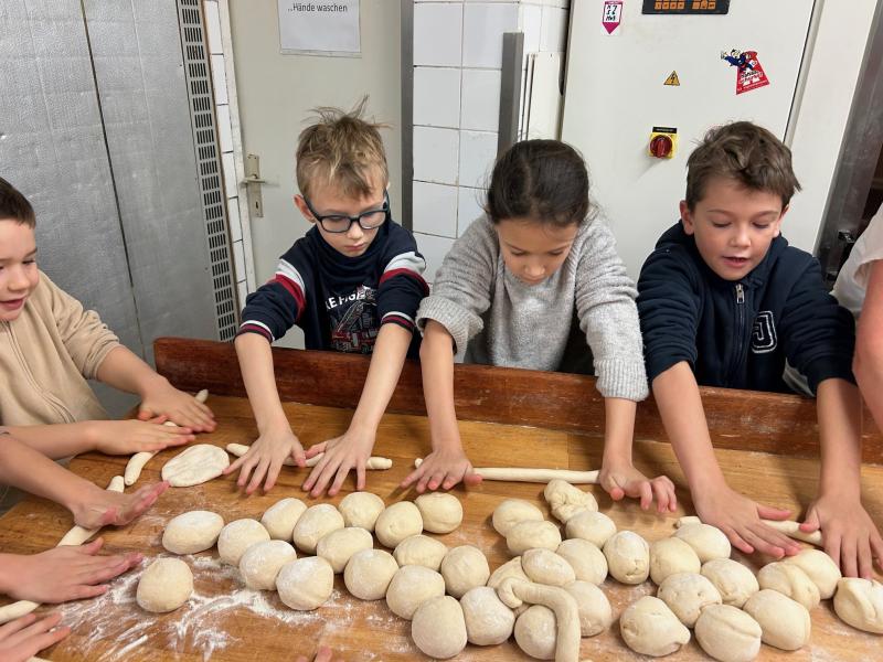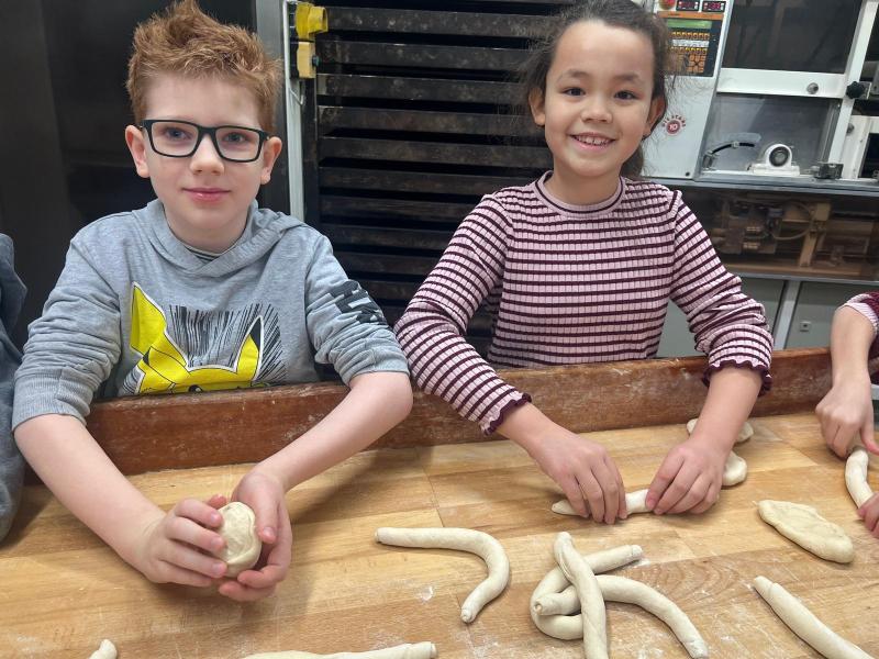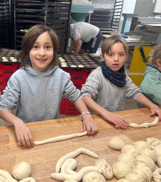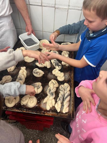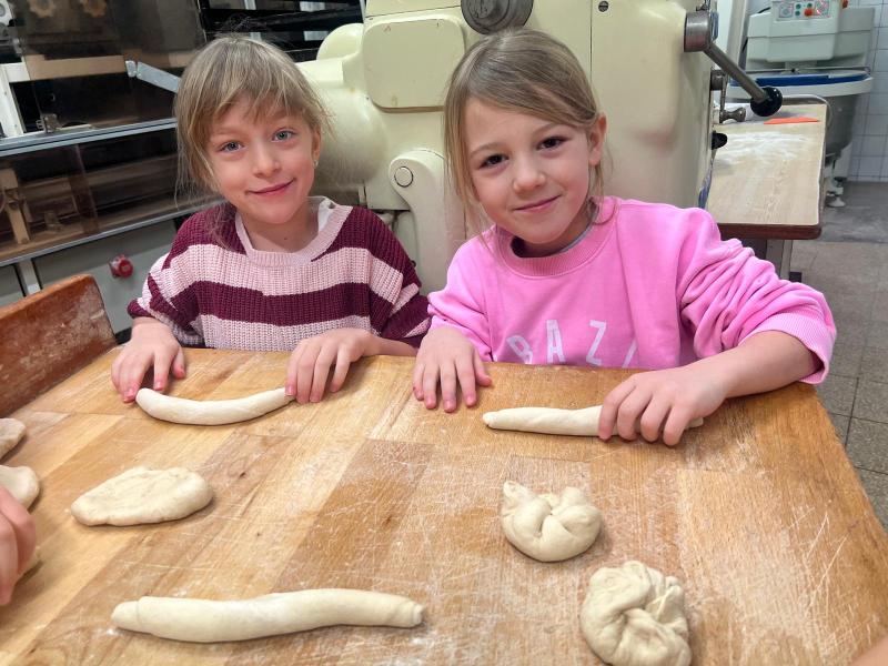 Nach einer interessanten Führung durch die Backstube durften die Kinder Handsemmeln, Mohnflesserl, Kipferl, Handsalzstangerl, Striezel, Brezen und eigene Kreationen selbst formen, bestreuen und backen. Auch erfuhren wir viel Wissenswertes über die Erzeugung von Brot und Gebäck.