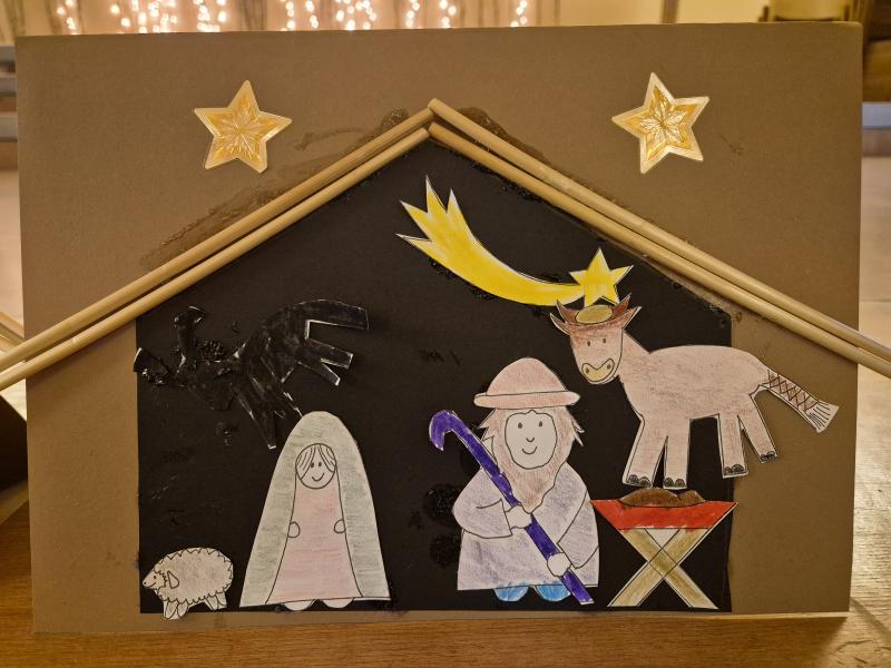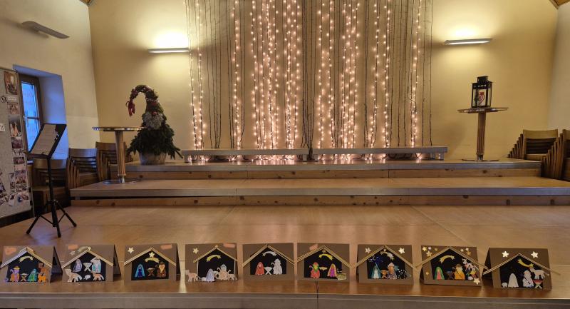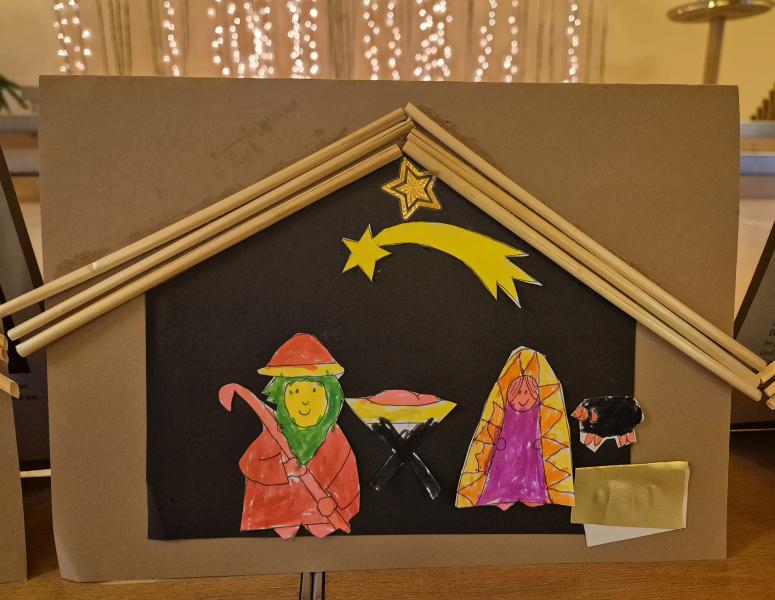 Dann ging es zum gemütlichen Ausklang über. Die Kinder bastelten mit ihren Eltern Papier-Krippen und stärkten sich bei Punsch und Keksen.