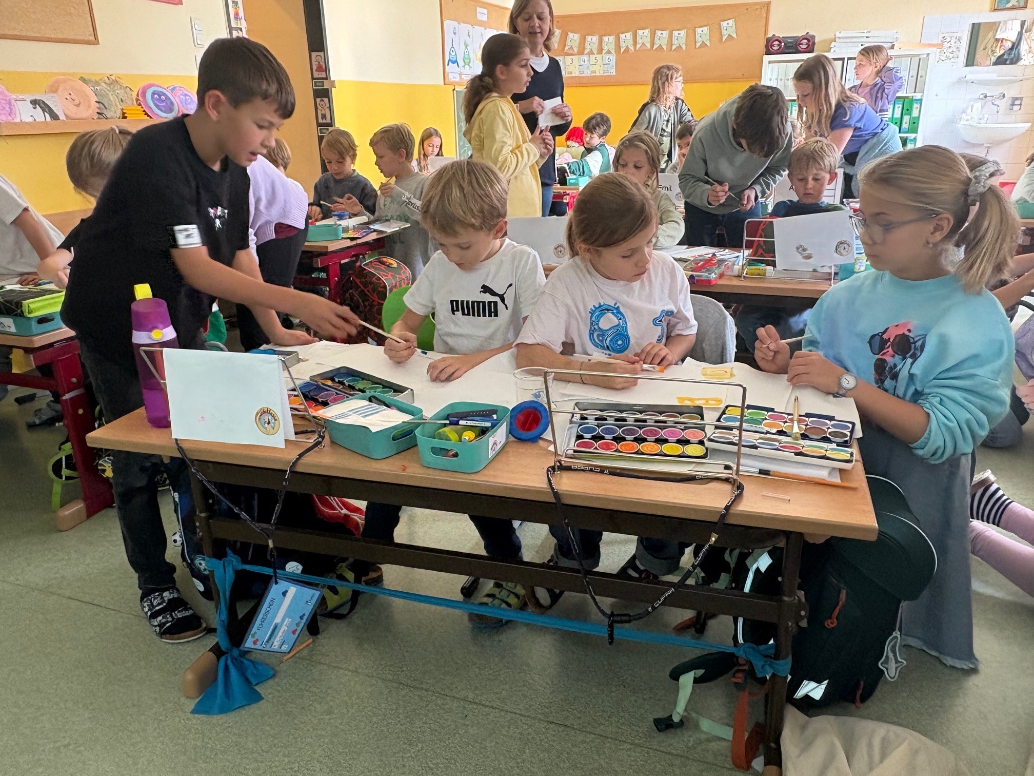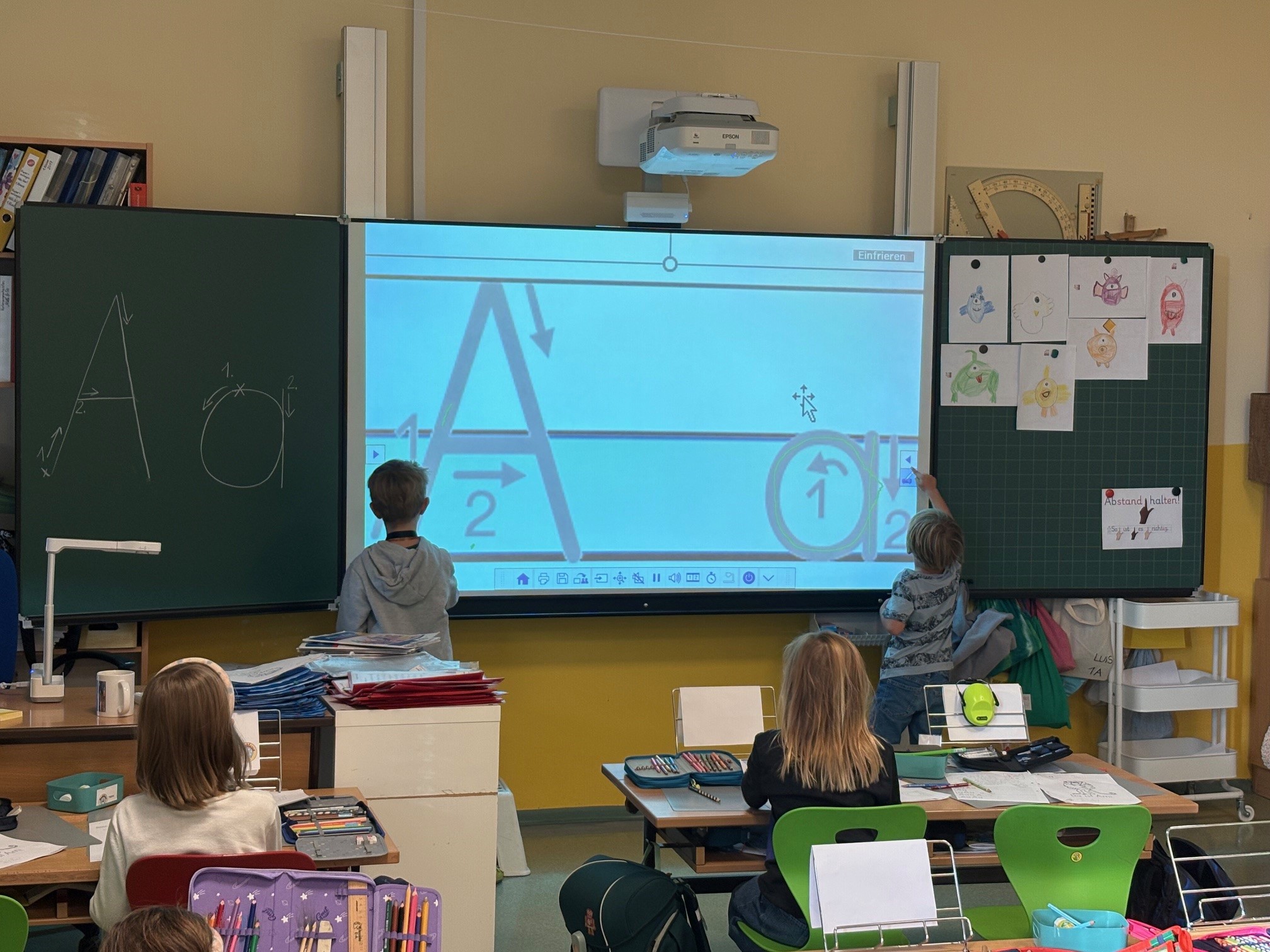 Die Kinder der 1a lernen die ersten Buchstaben: A, M und U.