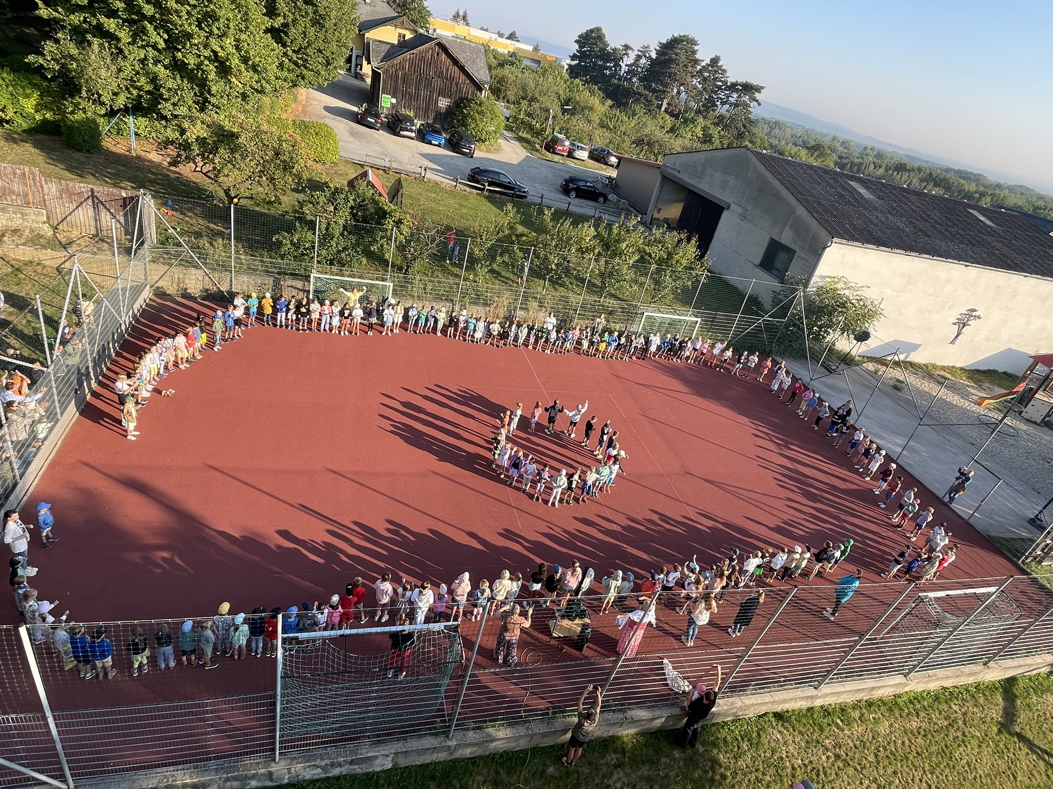 Jeden Montagmorgen heißt es für alle Klassen - Treffpunkt Sportplatz.